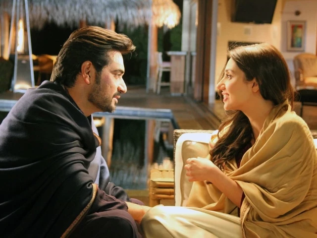 The film’s poster, shared by director Nadeem Baig, features Mahira in an elegant white dress and Humayun in a sharp suit vest, embracing under a spotlight in a grand, vacant mansion.